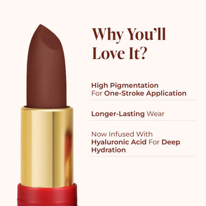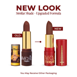 Take a trip down memory lane with our "Barfee" coffee lipstick hue. This rich, dark coffee brown lipstick tint represents the melt-in-your-mouth pleasure of our favourite sweet delights. Coffee lipstick lush velvet matte look is provided by the creamy matte emulsion, while Vitamin E delivers antioxidant and conditioning benefits. Cocoa butter and moisturizing jojoba oil keep your lips nourished, soft, and smooth. With this scrumptious Coffee Brown lipstick, you may indulge your sweet craving and embrace the child within you, evocative of the overwhelming joy of consuming a delicious barfee. Explore the full range of lipsticks on Lovechild Masaba. Find Bullet lipstick and explore a world of diverse shades. Shop now for the perfect lipsticks!