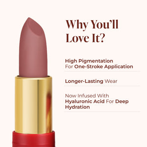 Embark on a nostalgic journey to a land of creamy, sticky caramel toffees with our "Caramel" shade of Caramel Nude lipstick. Indulge in the delicious sweetness of a thousand toffees in each hand. Caramel Lipstick's creamy matte composition creates a lush velvet matte finish, while Vitamin E provides antioxidant and moisturising benefits. Cocoa butter and jojoba oil nourish and moisturise your lips. Embrace your inner child and revel in the delectableness of our best caramel lipstick, made to add joy and sweetness to your everyday look. Explore the full range of lipsticks on Lovechild Masaba. Find Bullet lipstick and explore a world of diverse shades. Shop now for the perfect lipsticks!