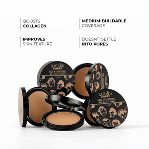 Enjoy refreshed, smooth skin with our 4-in-1 pressed compact powder; enriched with the qualities of moisturizer, primer, foundation and skin repair cream all in one! Available in versatile shades suited for all Indian skin tones, this nourishing formulation gives coverage, aids in skin repair and feels super smooth on the skin. Enriched with Macadamia Oil, Vitamin E and other skin-loving ingredients, this mattifying compact is one that will turn into your makeup bestie. Perfect for everyday wear, this multipurpose pressed compact can be used to set your makeup and give it a flawless matte finish as well.