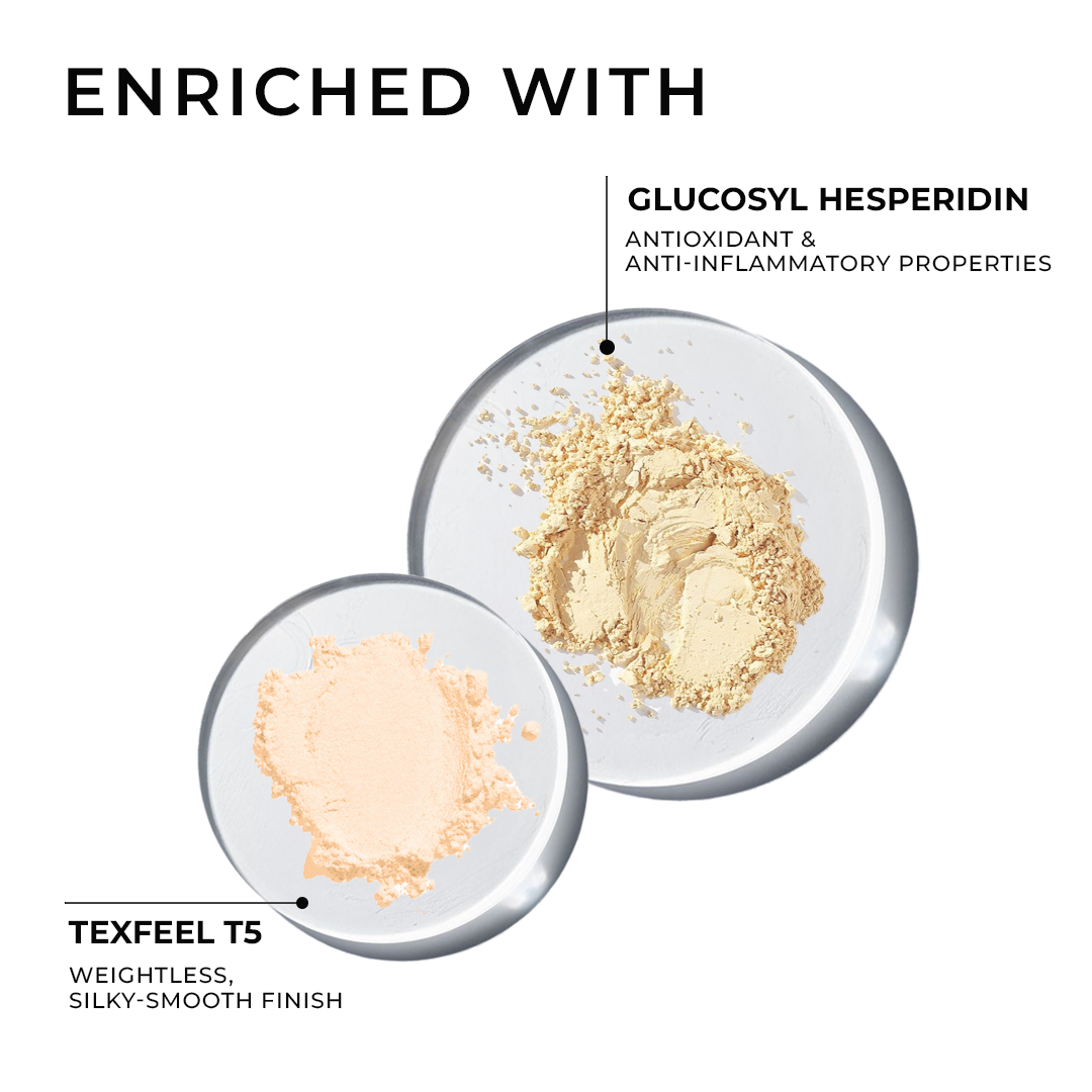 AQUA, CYCLOPENTASILOXANE, OCTYLMETHOXYCINNAMATE, PEG/PPG-18/18 DIMETHICONE, SORBITAN SESQUIOLEATE, ISODODECANE, TRIMETHYLSILOXYSILICATE, DIMEHICONE COPOLYMER, PROPYLENE CARBONATE, DISTEARDIMONIUM HECTORITE, PHENYLTRIMETHICONE, SOHEXADECANE, SODIUM CHLORIDE, BUTYLENE GLYCOL, CAPRYL METHICONE, PHENOXYETHANOL, ETHYLHEXYLGLYCERIN, ZINC OXIDE, SILICA, KAOLIN, ALUMINUM STARCH OCTENYLSUCCINATE, LAUROYL LYSINE, GLUOSYL HESPERIDINE, POLYMETHYL METHACRYLATE, TOCOPHERYL ACETATE, MAY CONTAIN(+/-): CI 77019, CI 77891, CI 77492, CI 77491, CI 77499.