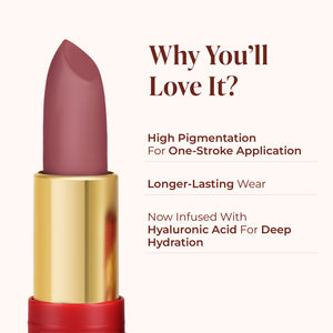 Experience the delicious reminiscence of your childhood with our "Meetha" Light pink lipstick hue. This Mauve shade Lipstick instantly transports you to a time when sharing your favourite candy during class was a wonderful treat. Light Pink Lipstick's creamy matte composition creates a velvety velvet matte finish, while Vitamin E provides antioxidant and moisturising benefits. Cocoa butter and jojoba oil nourish and moisturise your lips. Embrace the nostalgia of the past and indulge your inner child with this beautiful mauve lipstick. Explore the full range of lipsticks on Lovechild Masaba. Find Bullet lipstick and explore a world of diverse shades. Shop now for the perfect lipsticks!