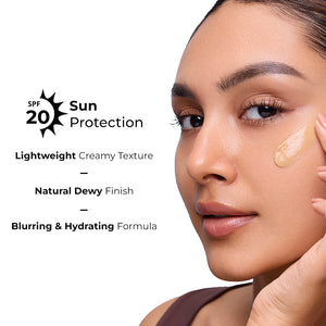 This 5-in-1 BB cream brings balance, blur and brilliance with the goodness of serum, primer, concealer, sunscreen and moisturizer, all in one. Enriched with nourishing ingredients, it evens out skin tone, conceals blemishes and hydrates your skin with sun protection. With shades curated to suit all Indian skin tones, it blends seamlessly onto your skin making it perfect for everyday wear!
