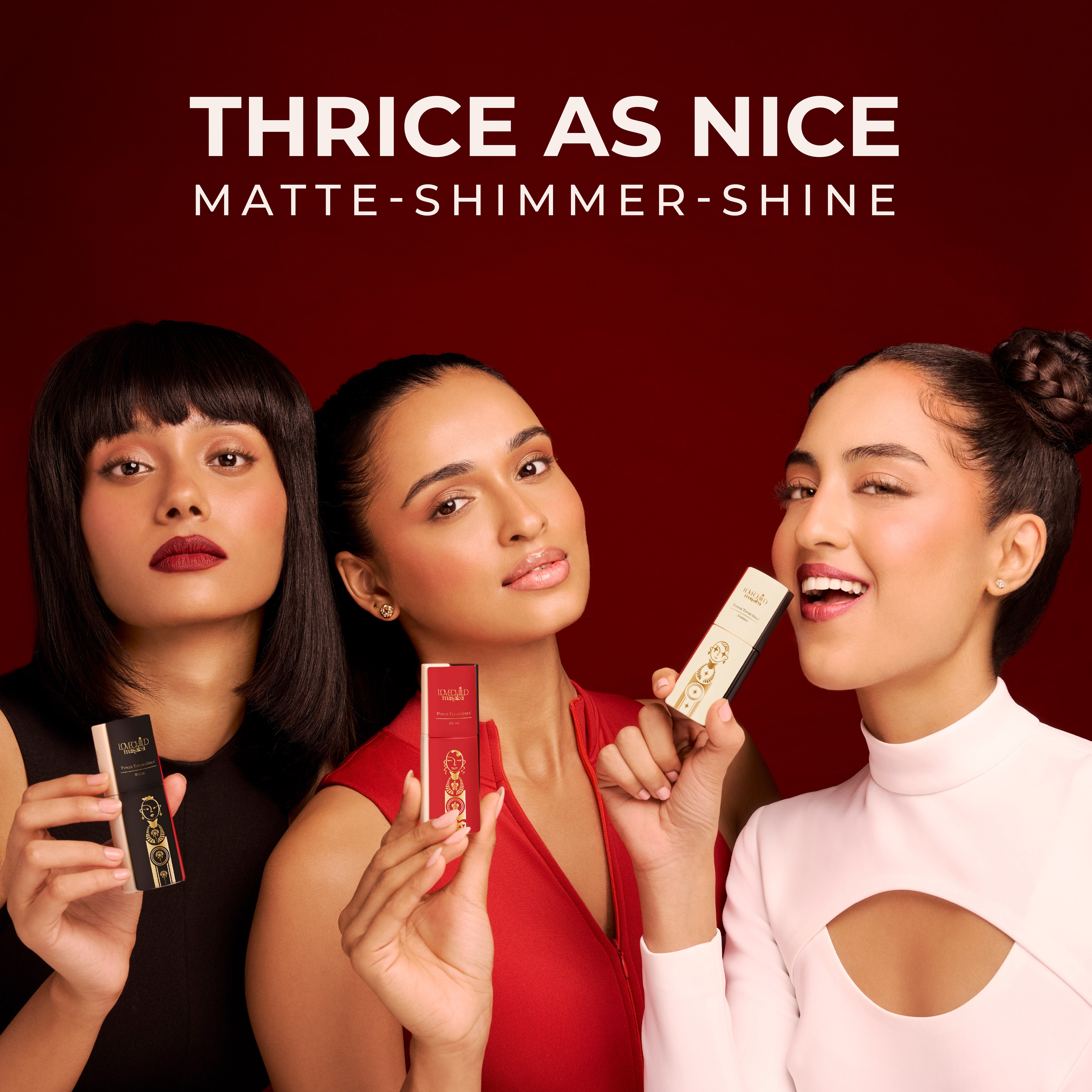 Introducing India’s ultimate finish-forward lip essential — a 3-in-1 Lip Combo that is ‘Thrice as Nice’ with Matte -Shimmer-Shine, all in one sleek magnetic stack. A powerful blend of skincare and makeup, this formula comes